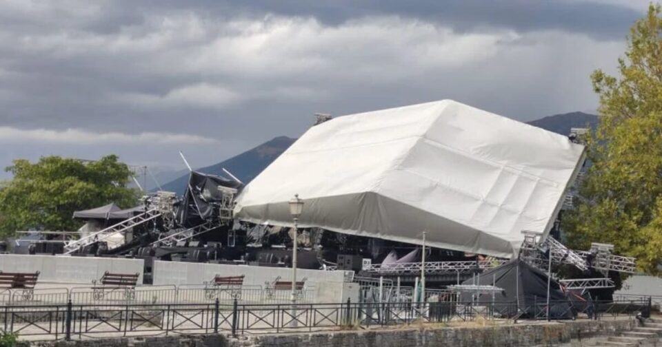 Οι θυελλώδεις άνεμοι που έπληξαν τη δυτική Ελλάδα το Σάββατο, 30.08.2025, έφεραν ένα σκηνικό τρόμου στα Γιάννενα, όταν ξήλωσαν τη σκηνή που προετοίμασαν οι τεχνικοί για συναυλία.