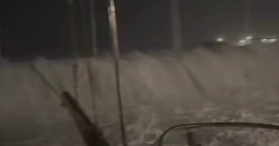 Οι δέστρες δεν άντεξαν την πίεση, το νερό μπαίνει ορμητικά μέσα, ενώ η θάλασσα δείχνει ανεξέλεγκτη, παρασύροντας ό,τι βρει μπροστά της.