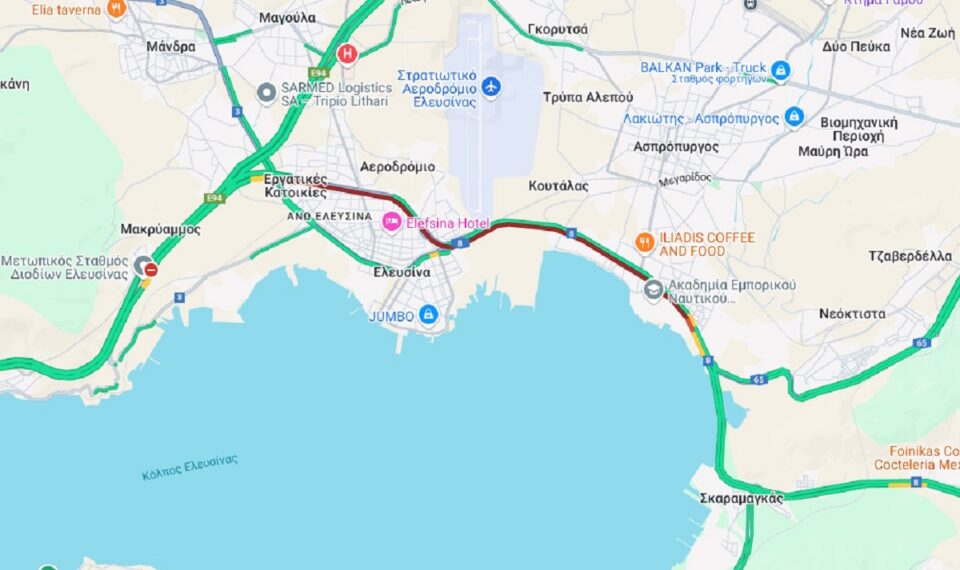 Η κατάσταση στο σημείο λίγο μετά τις 23.00 το βράδυ της Κυριακής ήταν πολύ δύσκολη, με τον χάρτη της κίνησης στο συγκεκριμένο κομμάτι να είναι κατακόκκινος.