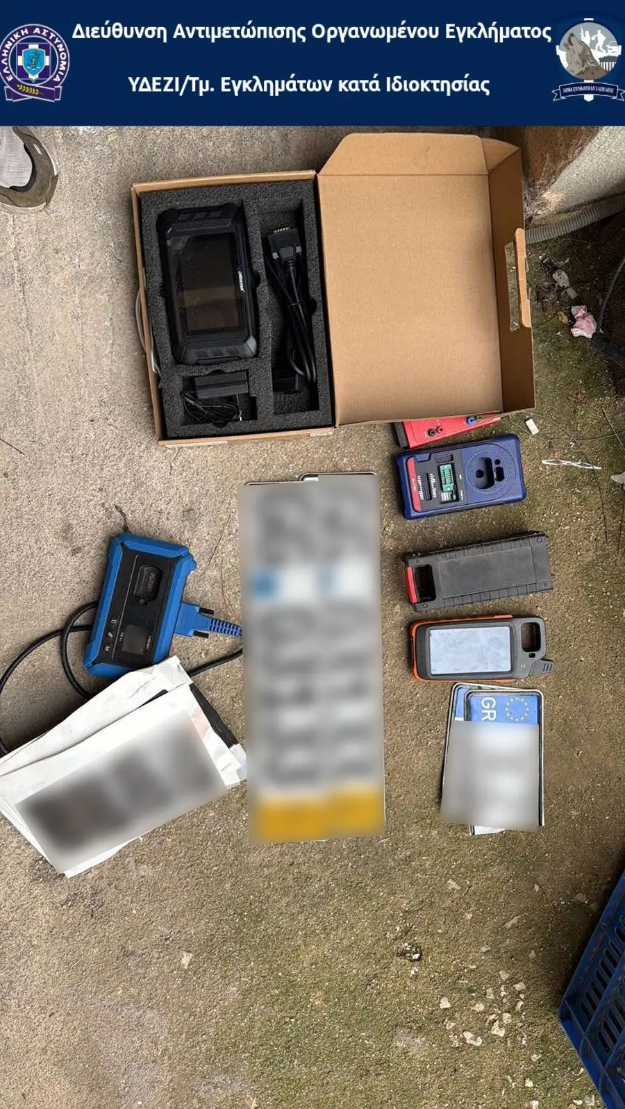 Η αστυνομία κατάσχεσε 36 κλεμμένα αυτοκίνητα, πλήθος εξαρτημάτων, εγγράφων, πινακίδων και κλειδιών οχημάτων, σφραγίδες εταιρειών, φορητό παρεμβολέα (signal jammer), πορτοφόλι κρυπτονομισμάτων, 15.000 ευρώ, 1.200 γραμμάρια κοκαΐνη, 3.200 γραμμάρια κάνναβης, αναδιπλούμενους σουγιάδες κ.α. Το συνολικό όφελος που αποκόμισε η σπείρα από τη δράση της υπερβαίνει το 1.500.000 ευρώ