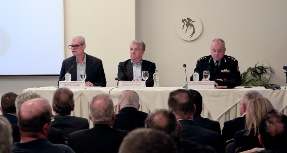 Στην ενίσχυση της επιχειρησιακής ετοιμότητας της Κρήτης ενόψει της αντιπυρικής περιόδου του 2026, επικεντρώθηκε η ευρεία σύσκεψη που πραγματοποιήθηκε σήμερα Παρασκευή (24.04.2026) στο Ηράκλειο, παρουσία του υπουργού Κλιματικής Κρίσης και Πολιτικής Προστασίας, Ευάγγελου Τουρνά.