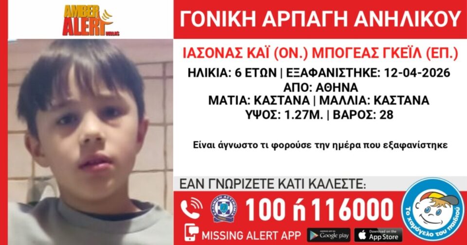 Όπως αναφέρει μεταξύ άλλων η ανακοίνωση από το «Χαμόγελο του Παιδιού» στις 12/04/2026 ο πατέρας του ανηλίκου προέβη σε αρπαγή του Ιάσωνα Κάι Μπογέα Γκέιλ, 6,5 ετών, από την περιοχή της Βουλιαγμένης Αττικής και έκτοτε τα ίχνη του αγνοούνται.